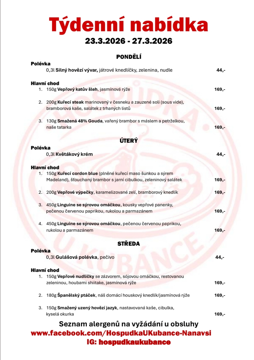 Přijďte ochutnat naši týdenní nabídku v srdci Dobrovíze.